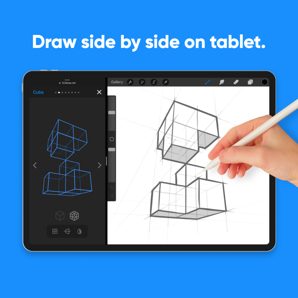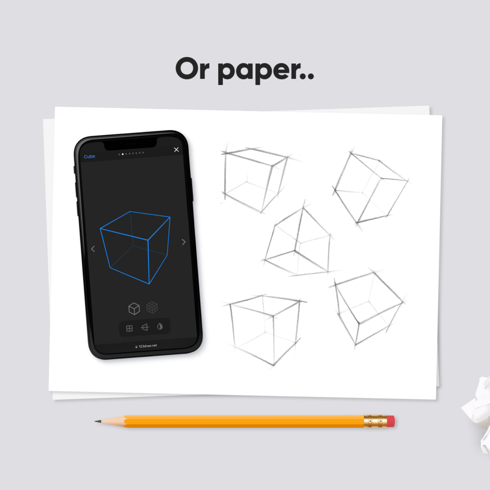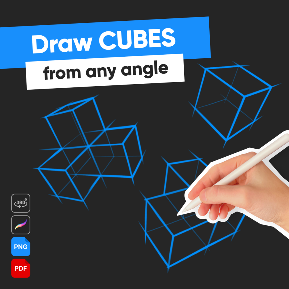 Practice drawing Cubes from any angle using dynamic 3D references.